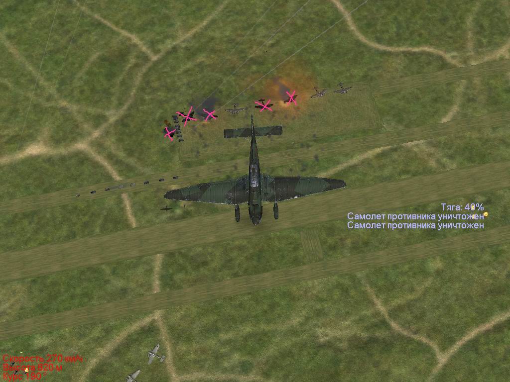 Взлетели, быстро собрались, согласно оговоренному плану начали набирать высоту. Ч/з минут 7 после взлета, находясь на высоте 3000-3200м заметили разведчика летящего где-то на 4500м. Полезли за ним. поравнявшись по высоте заметили еще одну точку где-то на 2000м. Хотдог спикировал, проверил - честно соблюдая заповеди ваятеля коопов - забывать все, что он о карте знает  , оказалась Сушка(хорошо, что не 27-я  ). Нестер пошел в паре с Хотдогом, а я решил напасть на разведчика. Несколько раз под разными углами со скольжения обстреливал - повреждений практически не нанес, затем решил попрактиковать скольжение Ворожейкина, предпринял попытку поравняться по высоте и скорости. Находился на 8,5 часов от разведчика чуть ниже, сказалось абсолютное не знание углов обстрела установок "Рамы"(Fw189) - получил пулю в правый верхний угол внешнего глаза  . Отсоединился пратически сразу после ПК. В дальнейшем по ТС слышал, что Хотдог не вышел из пике, предварительно превысив кретическую скорость. Нестер видно любит нажимать большие красные кнопки  . Помню долго кричали Ацетону: "...залезь обратно в самолет...", после того как он все-таки выпрыгнул...