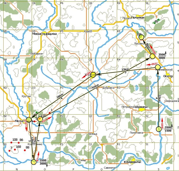 Починок (S-6) - истребители; Бомбардировщики - старт в воздухе (S-2), высоты 1500-2000м, курс 300; посадка Лысовка (R-5). |  |  |  |  |