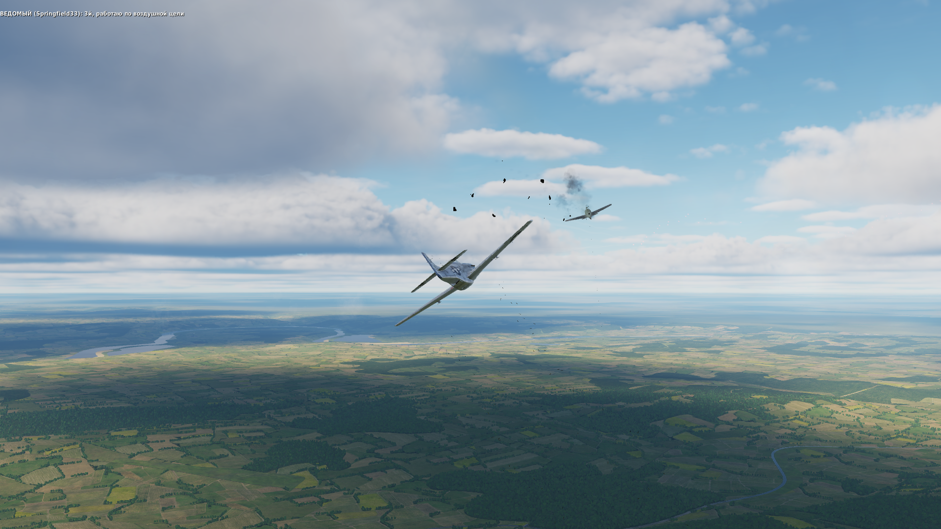 Вылет на прикрытие, встретили три звена противника, скинули их вниз, часть ушла к земле и была добита ботами, часть пыталась добраться до бомберов, мы им не дали - три сбитых.