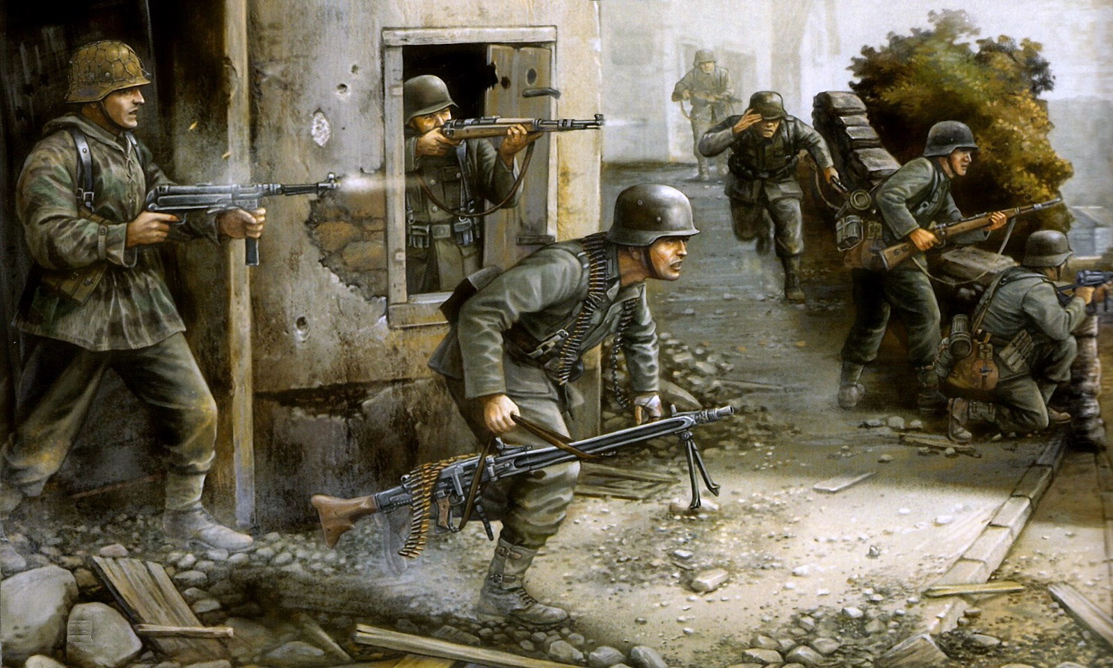 7 июля 1943 года 09:30 Поныри превратились в мясорубку, что на земле, что в воздухе. Каждый вылет мы теряем пилотов, а что твориться на земле страшно представить. Мы должны были войти туда уже два дня назад, но станция хорошо укреплена и русские держатся просто беспримерно. С раннего утра части 47го танкового корпуса штурмует станцию, но пока безуспешно. Подошли свежие резервы части 18го танкового корпуса, на поддержку летят Ю-87, наша задача обеспечить им работу. Почти весь вылет держался за тесаком, возле Понырей наткнулись на звено штурмовиков с порикрытием. Завязался бой, Тесак атаковал ил-2, тот стал уворачиваться и залез прямо мне в прицел - продублировал. Штуки относительно спокойно отработали и ушли на базу. Посадка успешная. Один сбитый ил-2 пополам с Тесаком. В итоге двум батальонам с танками удалось прорваться на северо-западную окраину Понырей. Но контратака русских отбросила их назад... 7 июля 1943 года 17:45 Первая полоса прорвана! Пехота закрепилась в северной части Понырей! 307я стрелковая дивизия русских столь героически обороняющая станцию измотана непрерывными боями, к ней движутся резервы, если они дойдут, повторится утренняя ситуация. На их уничтожение отправлют Ю-88, мы идем в сопровождении. В этот раз бой был еще интенсивнее, все небо в разрывах, дымах и самолетах. Пошел на помощь Ромео, даю очередь, но все мимо, к тому же лавка сидит очень плотно, как бы обоих не сбить, надо целиться по лучше - и тока я собираюсь опять зажать гашетки, как лавка превращается в желто-оранжевый шар! Какого черта, не силой мысли же я её аннигилировавал - оборачиваюсь - фока с №2, Кекс, все понятно