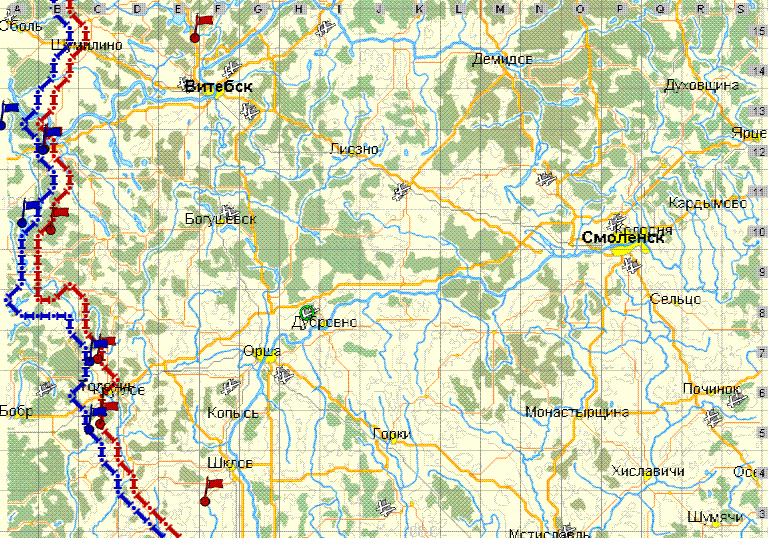Патрулировать район аэродрома по маршруту Дубровно (Н-8 ) - Богушевск (F-10) - Копысь (F-6). В случае обнаружения идущих на наш аэродром бомбардировщиков - атаковать.