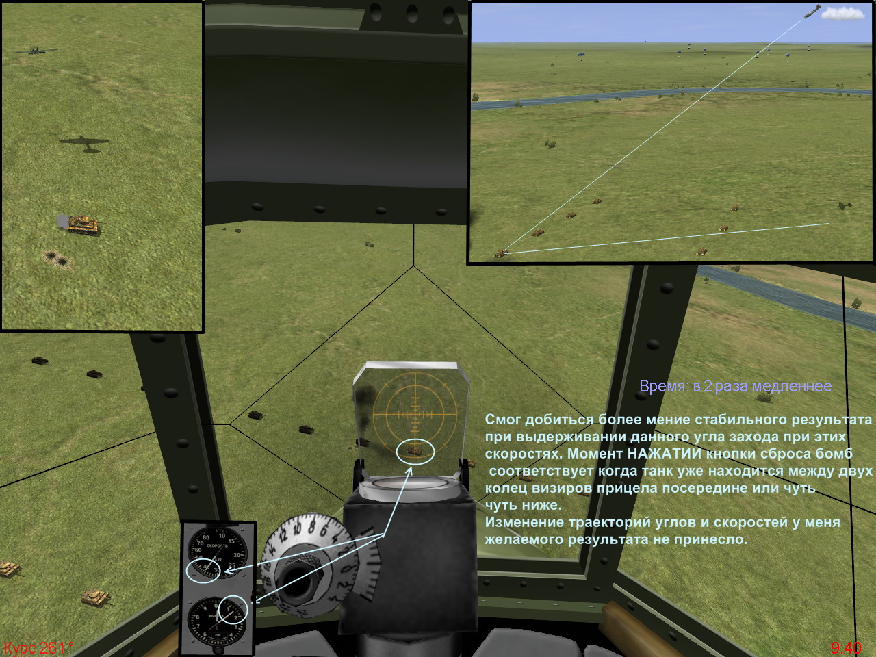 Всем Здрасте))) Это скорей не методика , а рекомендации. То от чего можно оттолкнуться и затем самостоятельно довести свой уровень до необходимого. В 4.11 в связи с переработанным перегревом очень важно сохранять энергию во время заходов для того чтобы можно было выполнять много равнозначных заходов и как следствие одинаковое прицеливание. Сложность в том что обороты надо выдерживать около 2000 и не допускать раскрутку мотора больше них, иначе перегрев , быстрый перегрев, гарантирован. Как этого достичь? Можно разными способами, я использую ШВ и постоянное дросселирование двигателя (Но это отдельная тема для обсуждения  ) Кому интересно качайте, а кому хватит и картинок, то смотрите картинки. Вот то что заказывал Ромео Ил-2 ранний, 50% топл., ФАБ50 по PzII и PzVI.