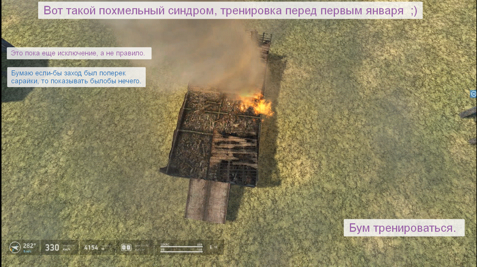 Порно этот немного другой жанр, жаль Инди ролик не писал где D9 на молекулы разлетелась от 2-х секундного залпа 3Б20. С лавкой тоже самое делается, токо попадать надо знать куда. Бывали случаи когда на вираже попав всего 2-мя снарядами, месс переворачивался и об землю. Также кобра кувыркается от попадания МГ151, тебя тож наверно кувыркнуло - вот и штопор.