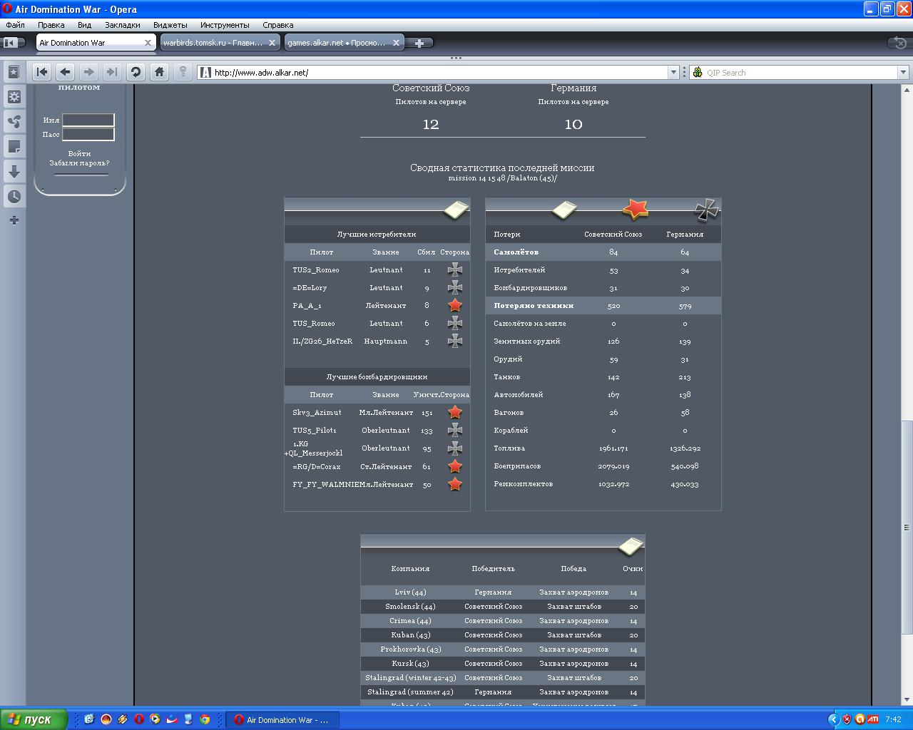 Второй пилот распигильдяйского. Две машинки с топливом, 1 сбитый. Сел с капотированием. Второй пилот пятого, ордена красного знамени... или как там у них. Шесть домиков, четыре зенитки по нулям на филдовом. Свезло просто. Второй пилот распигильдяйского. Огрёбся.