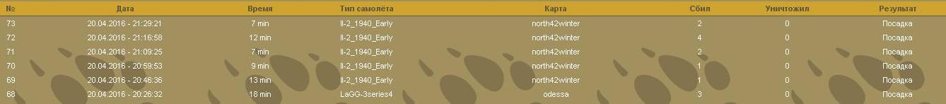 Прошу прощения за свою выходку, но подзаебал меня этот инфантил самовлюблённый. Спасибо Рома. Я тож не лыком шит, ушёл на БЗС и заебенил две фоки и лаптёжника на прикрытии нашей арт. батареи (потери - одна аварийная посадка, ранен). http://il2stat.aviaskins.com:8008/ru/pi ... er/?tour=9http://il2stat.aviaskins.com:8008/ru/so ... 60/?tour=9http://il2stat.aviaskins.com:8008/ru/so ... 33/?tour=9Результат - red teаm win, наши пешки за это время закрыли все объекты. Кстати - фул реал, никаких маркеров, карта и жопомер. На серваке (Wind-Of-Liberty) было 56 человек, не хило да, война во всю шла. Интересная система начисления очков: если сел на дром + 100% к результату вылета, если тима выиграла миссию +25% ко ВСЕМ результатам вылетов в течение миссии, что не может не мотивировать. Очки, как обычно - за мотор 100.