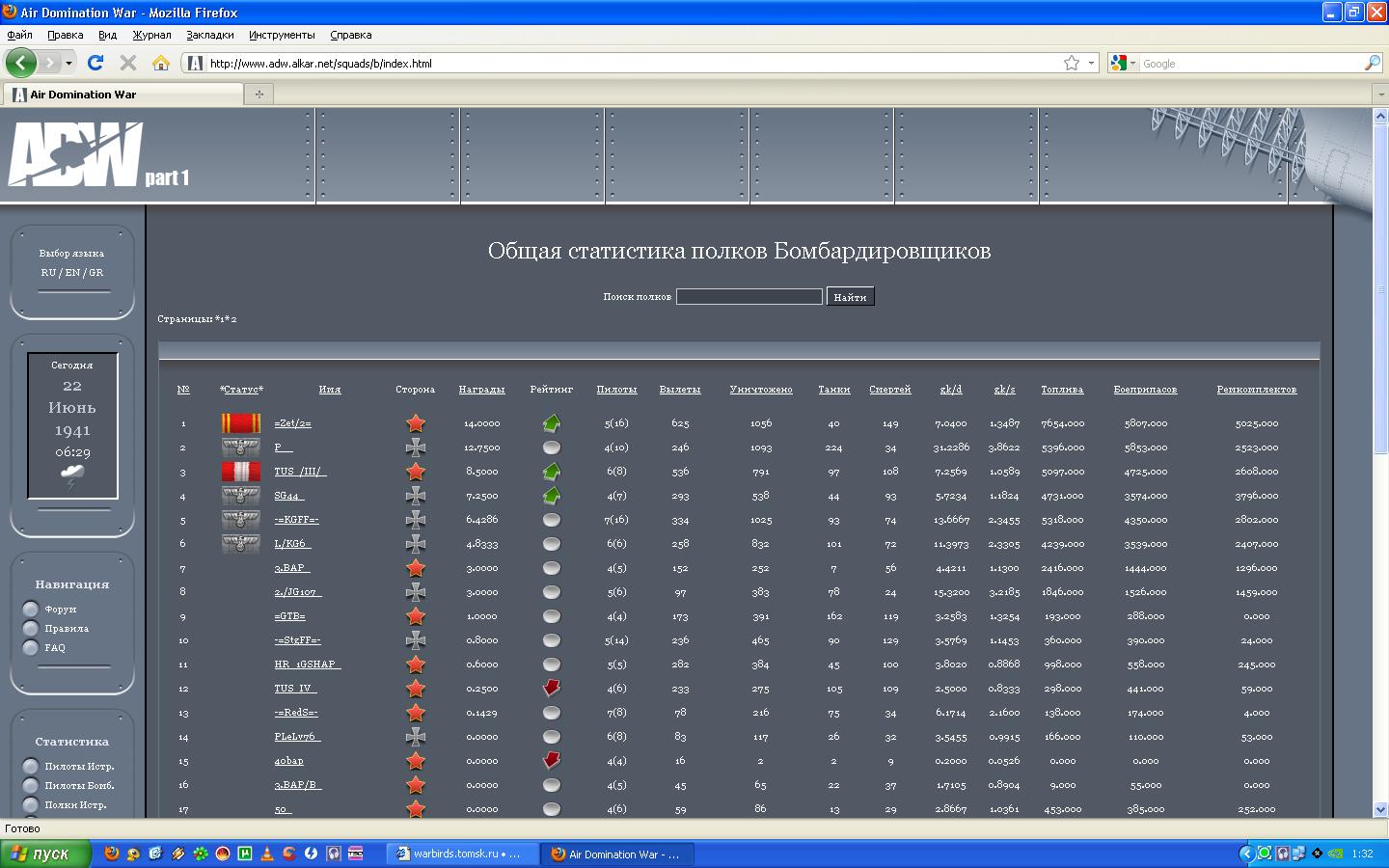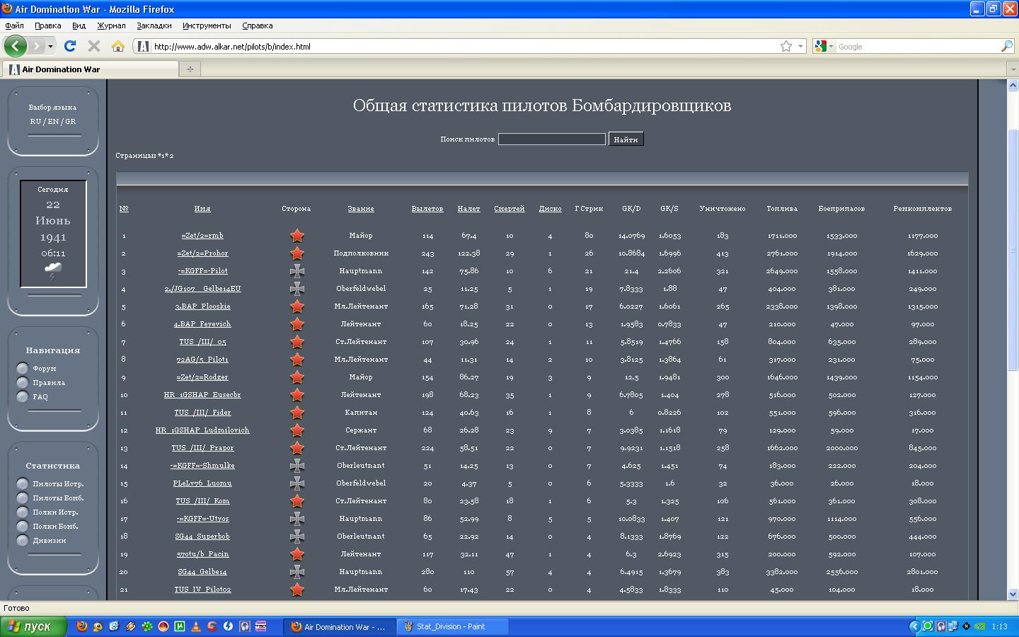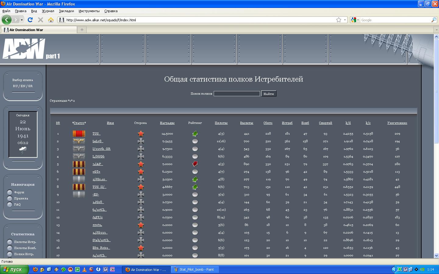 Всех с окончательной победой!!! Результаты полков и пилотов: Результат дивизии: Результат истребительных полков: Результат штурмовых полков: Топ пилотов истребителей: Топ пилотов штурмобомберов:
