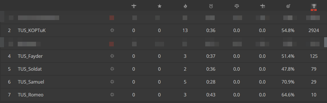 По итогам августа сидим на первой странице, хотя последние три дня только и делали, что огребались (исторично) http://il2stat.aviaskins.com:8008/ru/squads/?tour=38