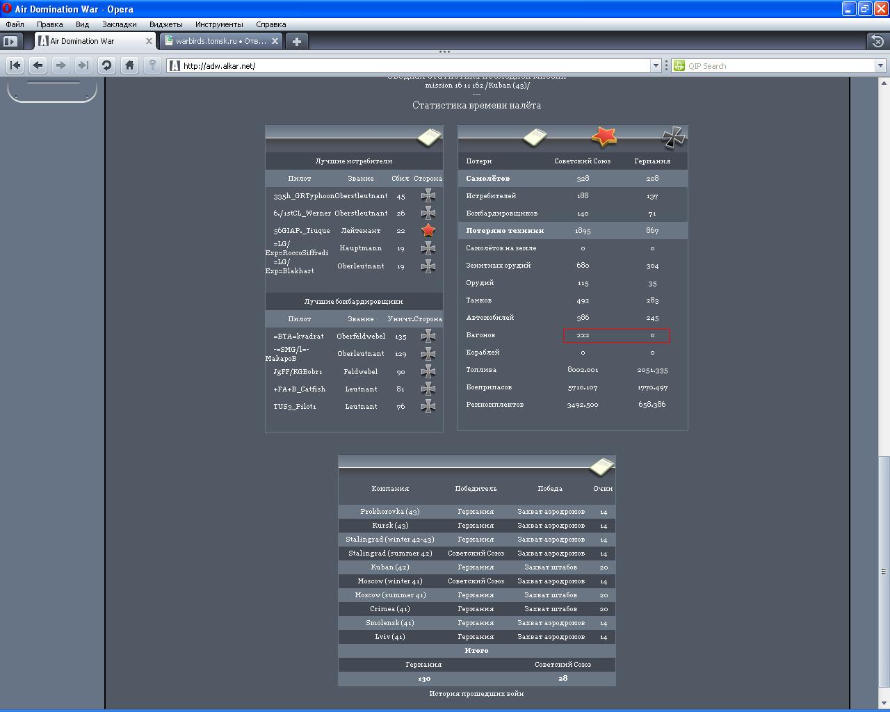 Вчера бомбил-стрелял-сапплаил-подыхал, много. Сегодня сразу после взлета у филда подкараулил Ил, под зены обратно сбежать не успел, Жужу проипал. Потом били по поездам, за 2 вылета 4 коляна, 6 вагонов, 66 зениток, 40 тонн фуйла. И вылез типа в топ стрикеров, аха