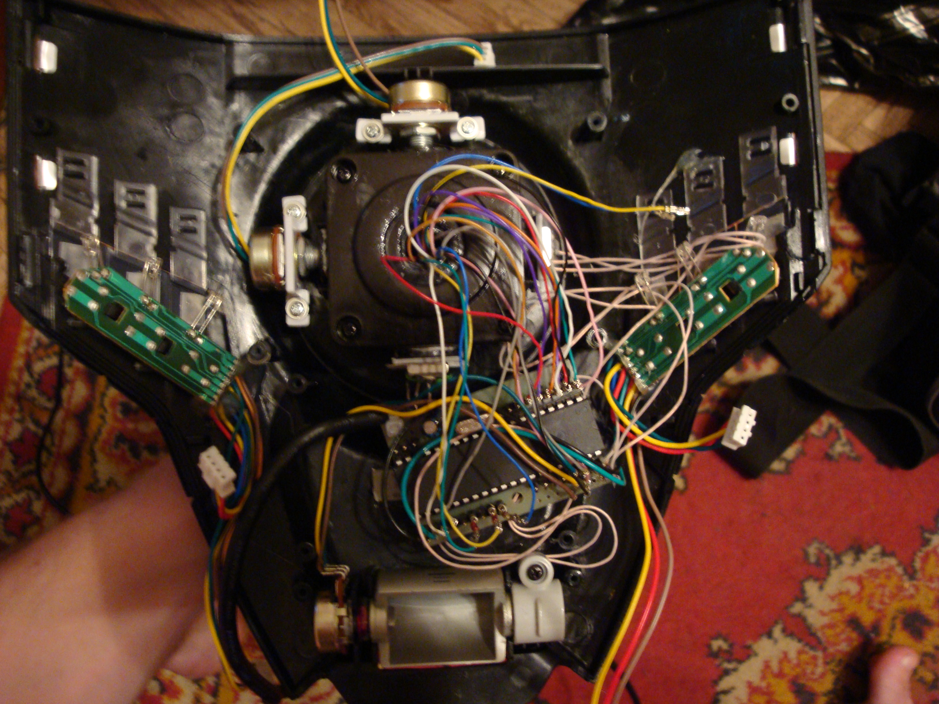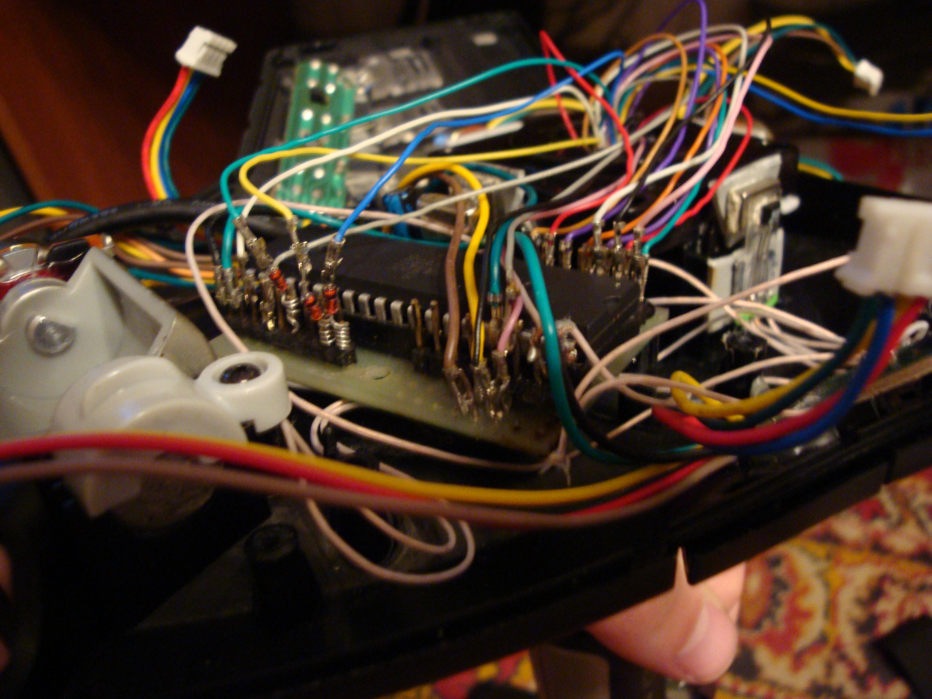 Комментарий к файлу: Пропатченная ева. Три кнопки в голове РУСа и хатка уже имеют свои диоды, а вот курок и кнопки 5, 6 их не имеют, поэтому придется самим подцеплять. Они собсно и намотаны на выводы. Еще порадовало, что в Еве все провода, приходящие на контроллер, имеют разъемы, поэтому особо париться с пайкой не пришлось.