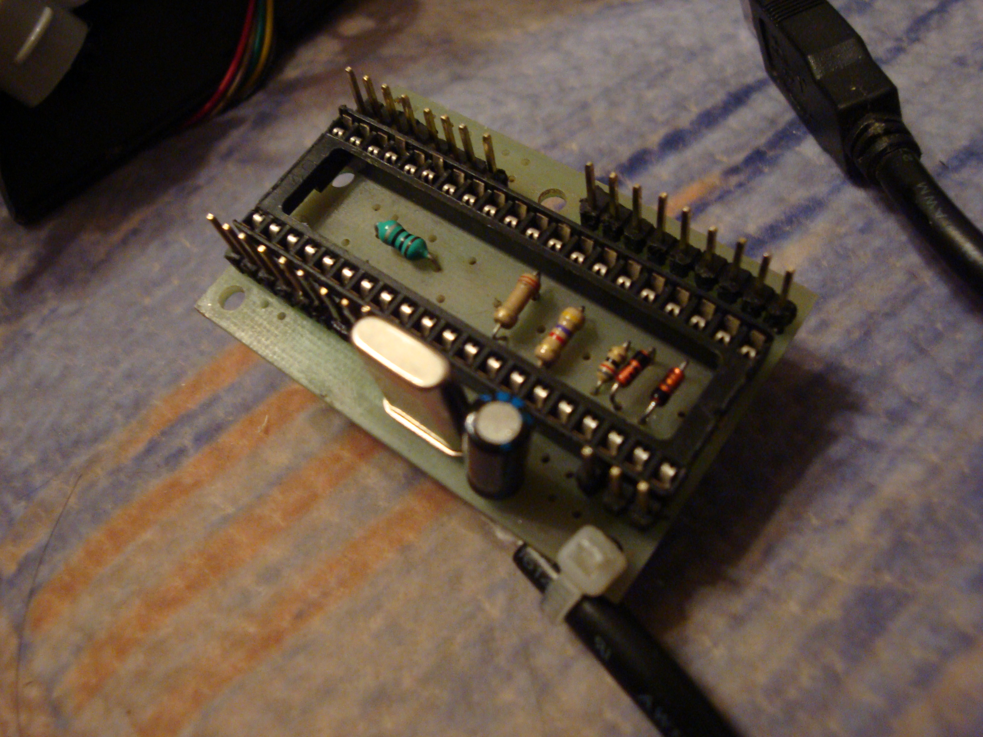 Впаивал другой кварц, правда не на 12, а на 2 МГц и подключал к программатору, всё читалось и шилось нормально. Со сдохшим кварцем соответственно не мог ни прочитать программу, ни прошить, ни фьюзы посмотреть. Для чистоты эксперимента делал это все на отдельной плате. Пробовал подрубать сдохший кварц к другой атмеге с наскоро написанной прогой типа "бегущий огонек", прошил на рабочем кварце, проверил - мигает, потом впаял пациента. Если бы кварц на 12мгц пахал, то огоньки бегали бы в 6 раз быстрее, чем с 2мгц кварцем. Но никакой жизнедеятельности не было. Про фнч я вот тоже подумал, придет кварц - обязательно впаяю по кондеру =) На крутые ацп пока забью значит. Хотя если от каждого холла кинуть не три провода, а экранированный кабель и поставить по фнч на сигнальный провод возле ацп, и питалово на холлах зафильтровать тем же фнч, то будет красотень. На самом деле еще JoyTester смутил своими циферками в нижнем левом углу - там на каждую ось отведено 2-байтовое число (0-65536), то есть имеется возможность слать суперточные данные на комп с контроллера, прикинувшегося хид-джойстиком, то бишь без написания дров. Ну да цветочек с ним. А с холлами все совсем просто и удобно - на выходе от 0 до 5 В. Думаю щас подрубить их к контроллеру евы, но так лень перекидывать обратно эти несколько десятков проводов ото всех кнопочек х_Х А чтобы подрубить холлы, просто надо измерить, сколько вольт подается на переменный резистор и на выходе датчика холла тупо поставить соответствующий делитель напряжения.