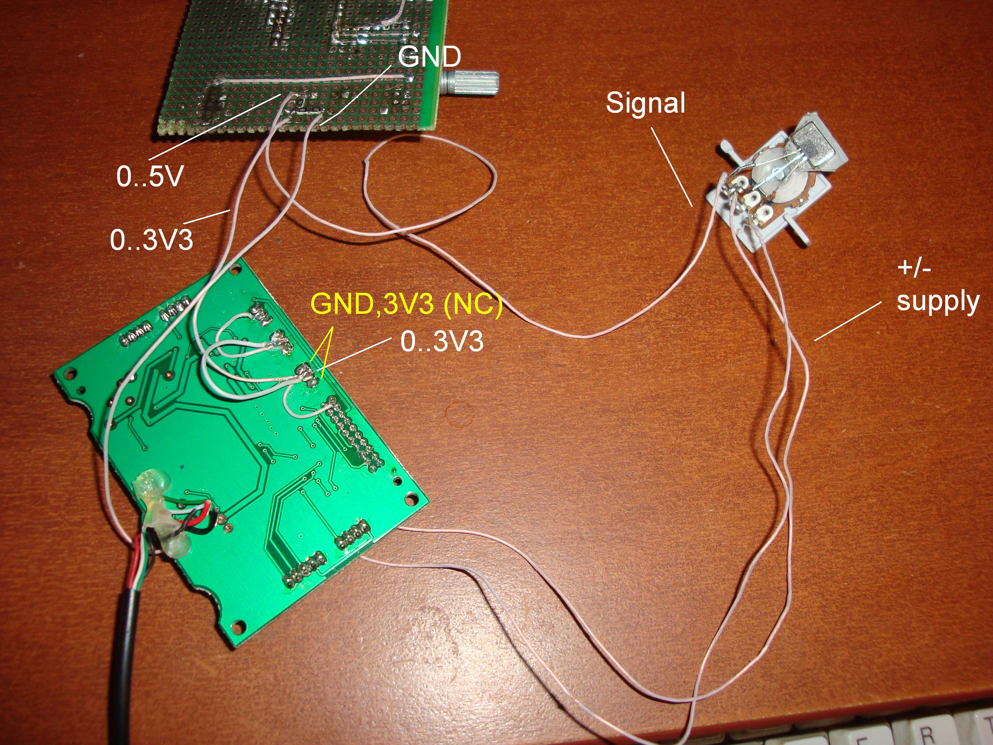 Я глянул, в еве уже стоят кондеры на осях и LC-фильтр на питалове, просто надо юзать евовские провода, а не как у меня, каждый по 20 см, тогда шума практически не будет =) Крайнее положение на глаз, чтобы принцип показать - когда на выходе холла 5 вольт, на контроллер приходит 3,3В. Эта мастырка уже стояла в ево с контроллером МДжой, вытащил для удобства проведения эксперимента, так что цз какой там угол, все равно приходится калибровать мастырку изменением расстояния от датчика до магнита.