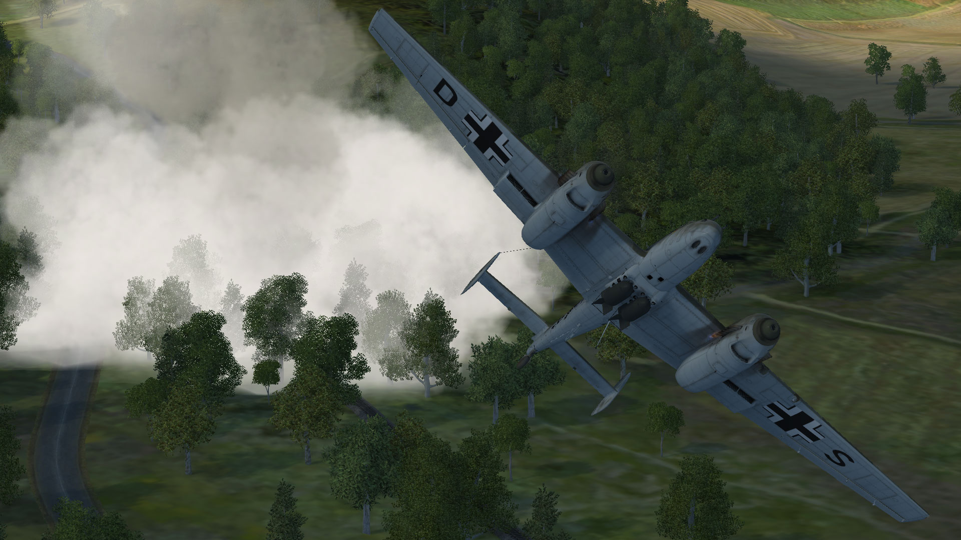 Первая картинка - шотофоп голимый. типа агитплакат.  Горящие хенки - для меня ничем не отличаются от тех, которые видно в Ил2. только анимацию паратрупиков добавили. Мятая трава никак не добавляет реализьма в игру, если посмотреть на стоящие сразу за самолетом деревцо и дерево. Однако прозрачные деревья. А трава не совсем прозрачная.