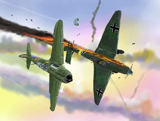 Самолеты красных: Як-9У (сам себя играет) МиГ-9ФС (имитирует МиГ-15)