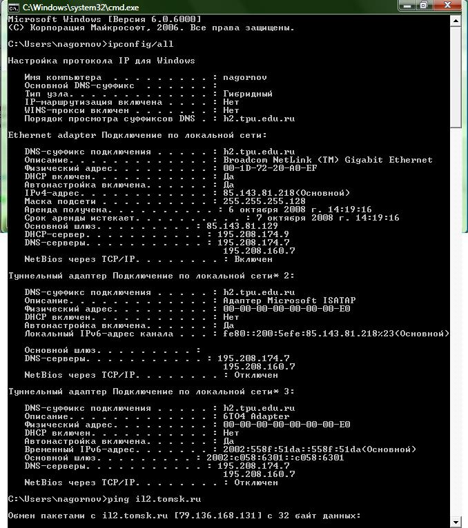 1) результаты выполнения команды ipconfig (т.к. на предыдущем скрине нифига не видно, прокрутка на картинке не работает  ).