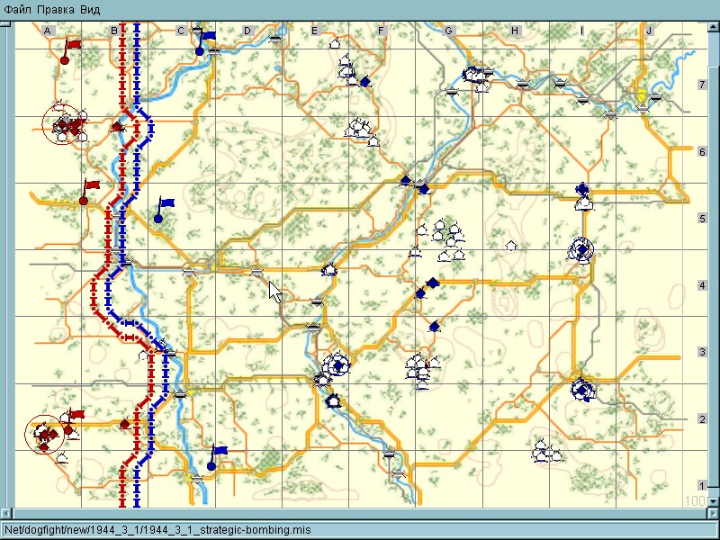 1. добавить в середине синей территории цели для красных штурмов (p47). штуки три таких хороших, вокзалы там, батареи, аэродром можно нелетабельный нарисовать, чтоб самолетов на земле навалом)