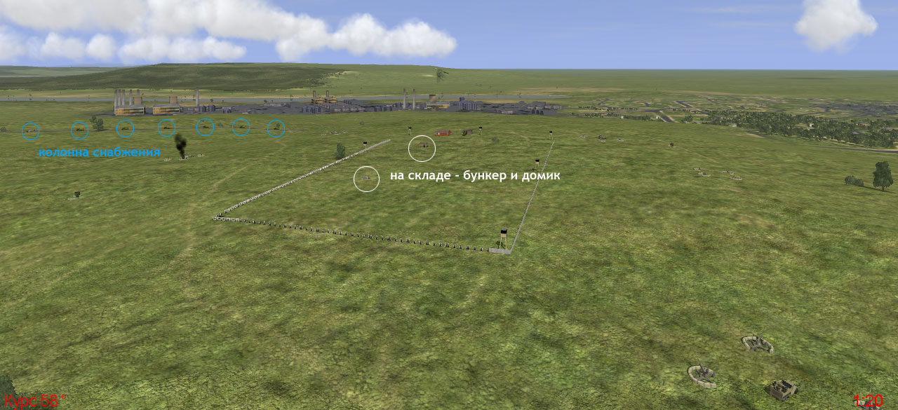 Просмотрел трек сегодняшнего вылета. Да, действительно, рядом, глубоко на красной территории стояли насмерть  друг против друга красные танки и грузовики из синей колонны снабжения... (((