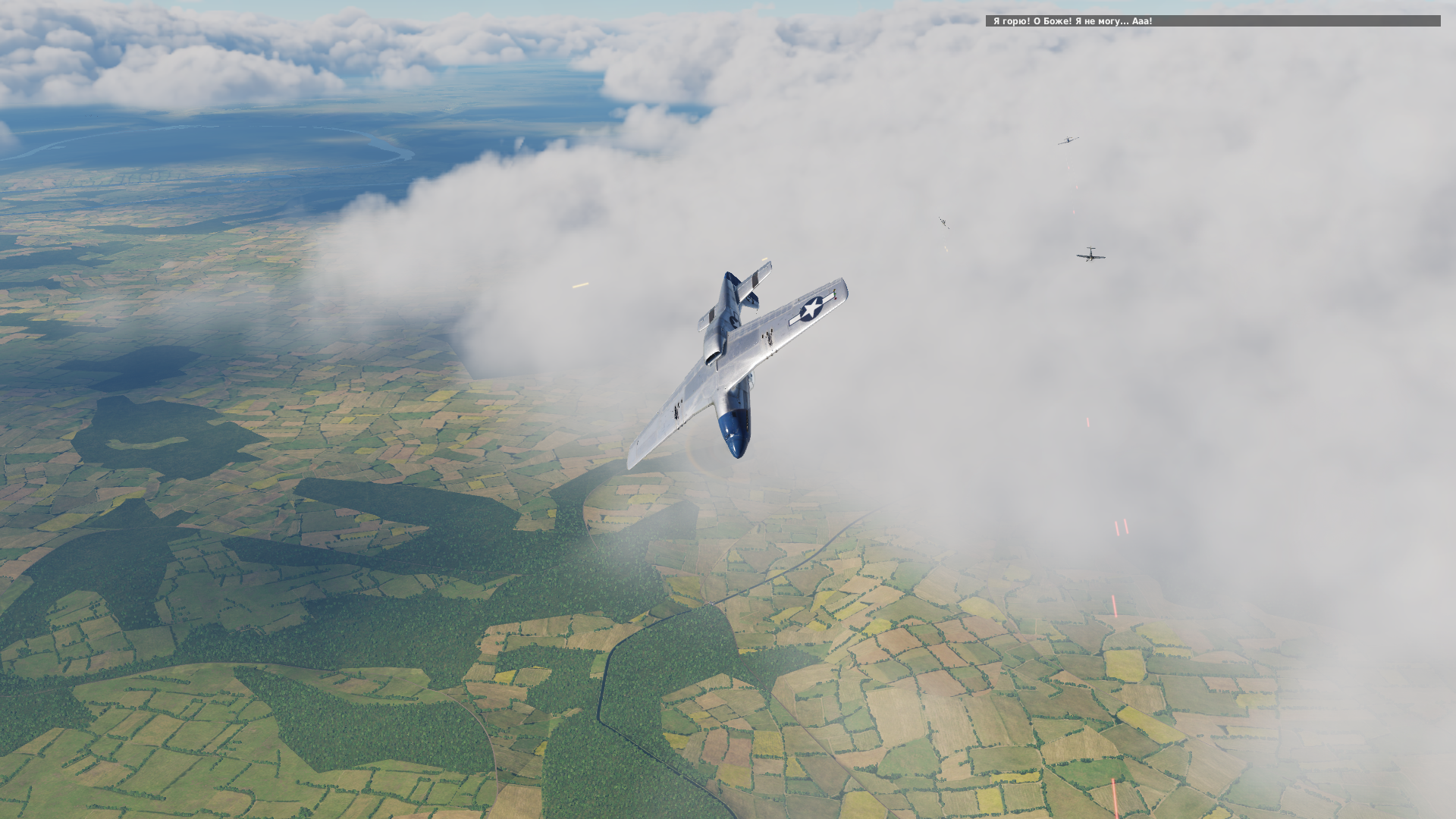 Взлетели в составе 12 Мустангов, 3 бота по пути решили заняться своими делами, поэтому вышли в район цели в количестве 9 Мустангов. Встретили над облаками 2 четверки мессов и фок, подбил один мессер. Собрались на обратном пути с Кортиком, безрезультатно провели поиск автоколонн и вернулись на базу. Летали долго, помимо подвесных баков, левый основной почти в 0, правый - 50%. Посадка штатно.