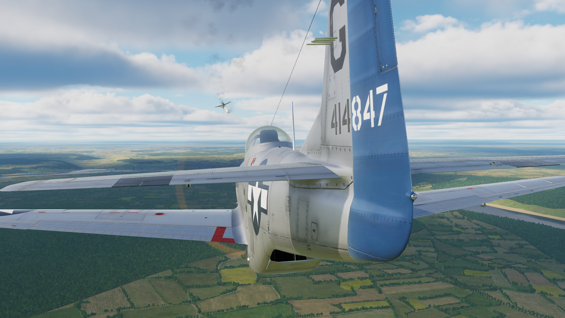 Дважды заходил на "бандитов". Первый раз на месса (ушел вниз с вывалившимся правым шасси), второй на фоку. Фока с маслянным дымом тоже куда-то вниз свалила. Поиск автоколонн, шныряющих в тени нормандских яблочных садов, успеха не принёс. Вернулись с Фенрицем живые и здоровые.