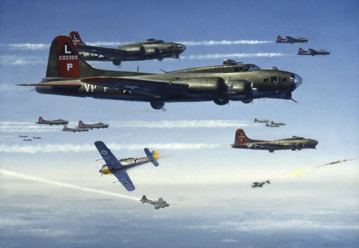КОНТЕКСТ В мае-июне 1944 года 91-я бомбардировочная группа летала на оснащенных радарами самолетах "Pathfinder". H2X, официально известный как AN/APS-15, был американской наземной сканирующей радиолокационной системой, использовавшейся для слепого бомбометания во время Второй мировой войны. Он был развитием британского радара H2S, первого наземного картографического радара, который использовался в боевых действиях. Он также был известен как "Mickey set" и "BTO" - радар "Bomb Through Overcast". Первые оснащенные H2X самолеты B-17 прибыли в Англию в начале октября 1943 года и впервые были использованы в бою 3 ноября 1943 года, когда VIII бомбардировочное командование ВВС США атаковало порт Вильгельмсхафен. Те миссии, в которых бомбардировку выполняли H2X, назывались "Pathfinder missions", а экипажи - "Pathfinder crews", в честь практики RAF использовать высококвалифицированные экипажи Pathfinder, которые шли перед основным потоком бомбардировщиков, идентифицировали и обозначали цель сигнальными ракетами. В американской практике экипажи Pathfinder использовались в качестве ведущих бомбардировщиков, а за самолетами, оснащенными радарами, следовали группы бомбардировщиков без радаров, которые сбрасывали свои грузы, когда это делал ведущий бомбардировщик. Вентральный полусферический радом для вращающейся антенны H2X заменил шаровую турель на B-17 Flying Fortress Pathfinders, а шкафы электроники для "набора Микки" были установлены в радиорубке в кормовой части самолета. были установлены в радиорубке в кормовой части бомбоотсека.