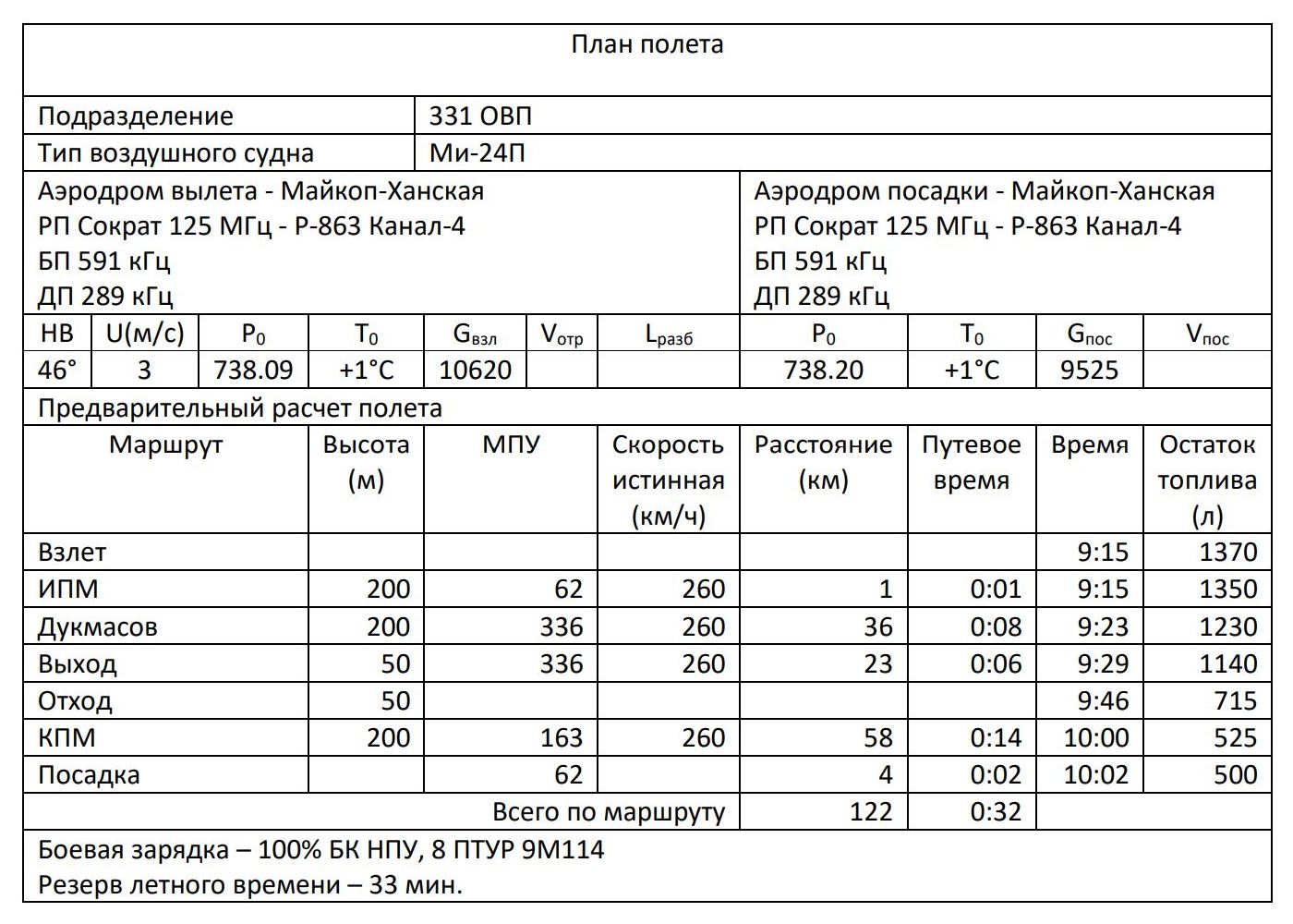ПЛАН ПОЛЕТА МИ-24