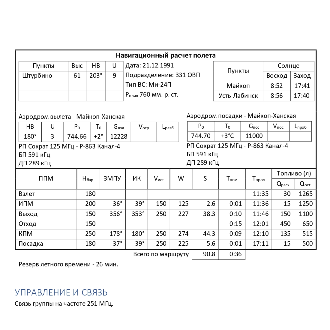 УПРАВЛЕНИЕ И СВЯЗЬ Связь группы на частоте 251 МГц.