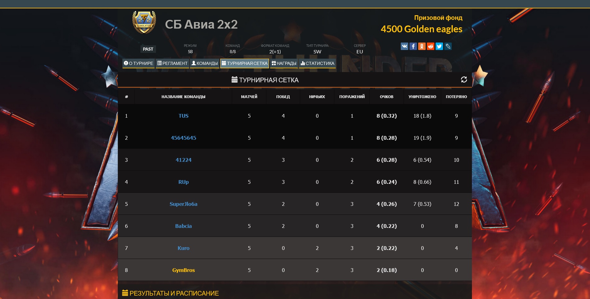 В итоге сидим на втором месте среди синевы http://il2stat.aviaskins.com:8008/ru/squads/?tour=66