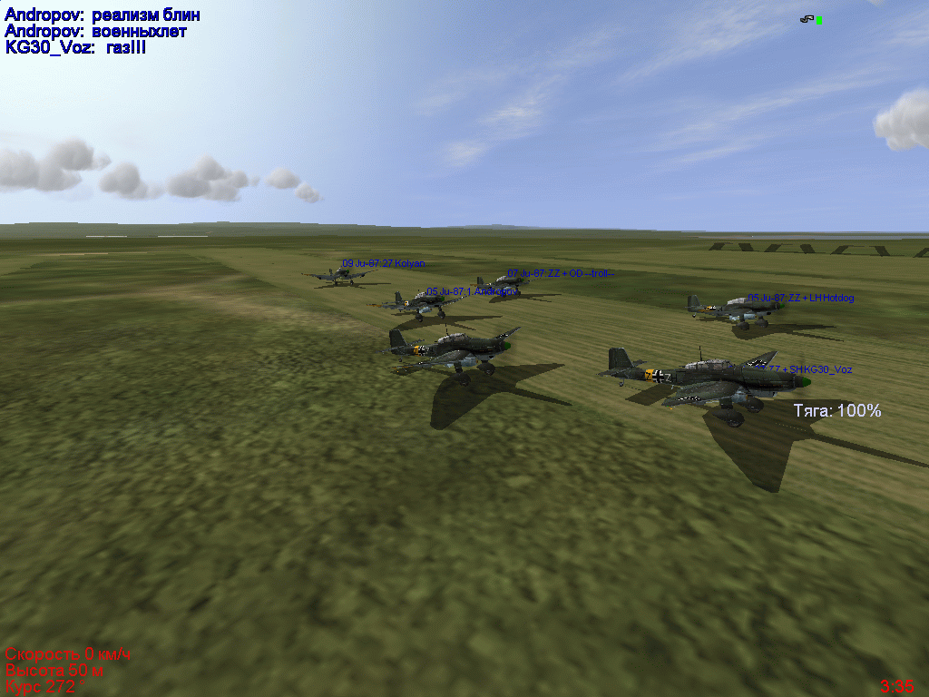 Я тока в строю еле держался...камандир скамандывал 95%, ставлю 95%, обгоняю(((...Счас в оффе тренируюсь строем летать, маневрировать