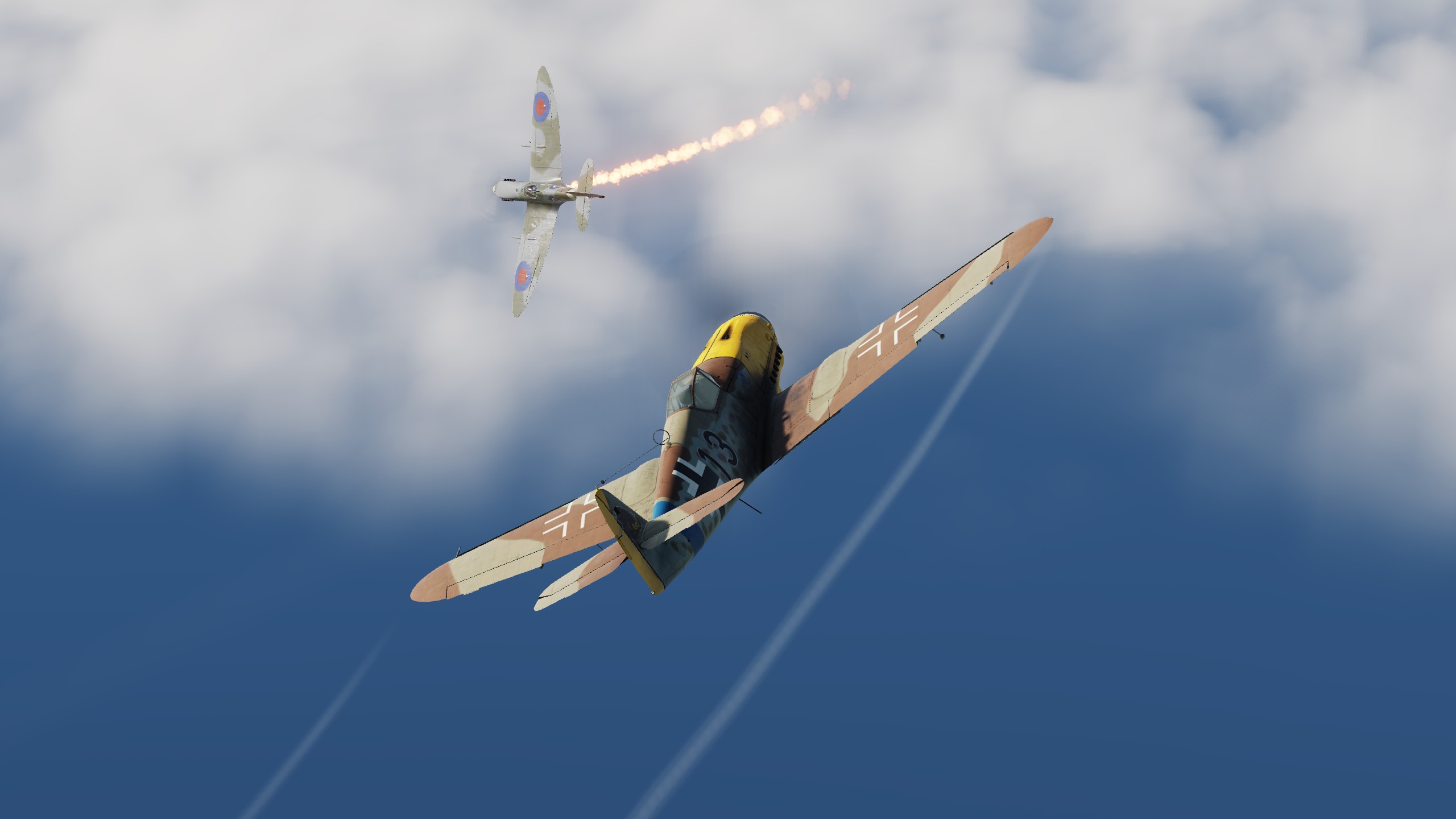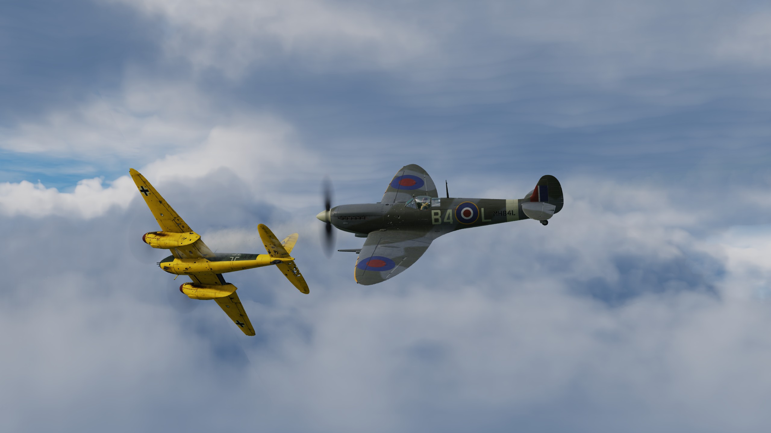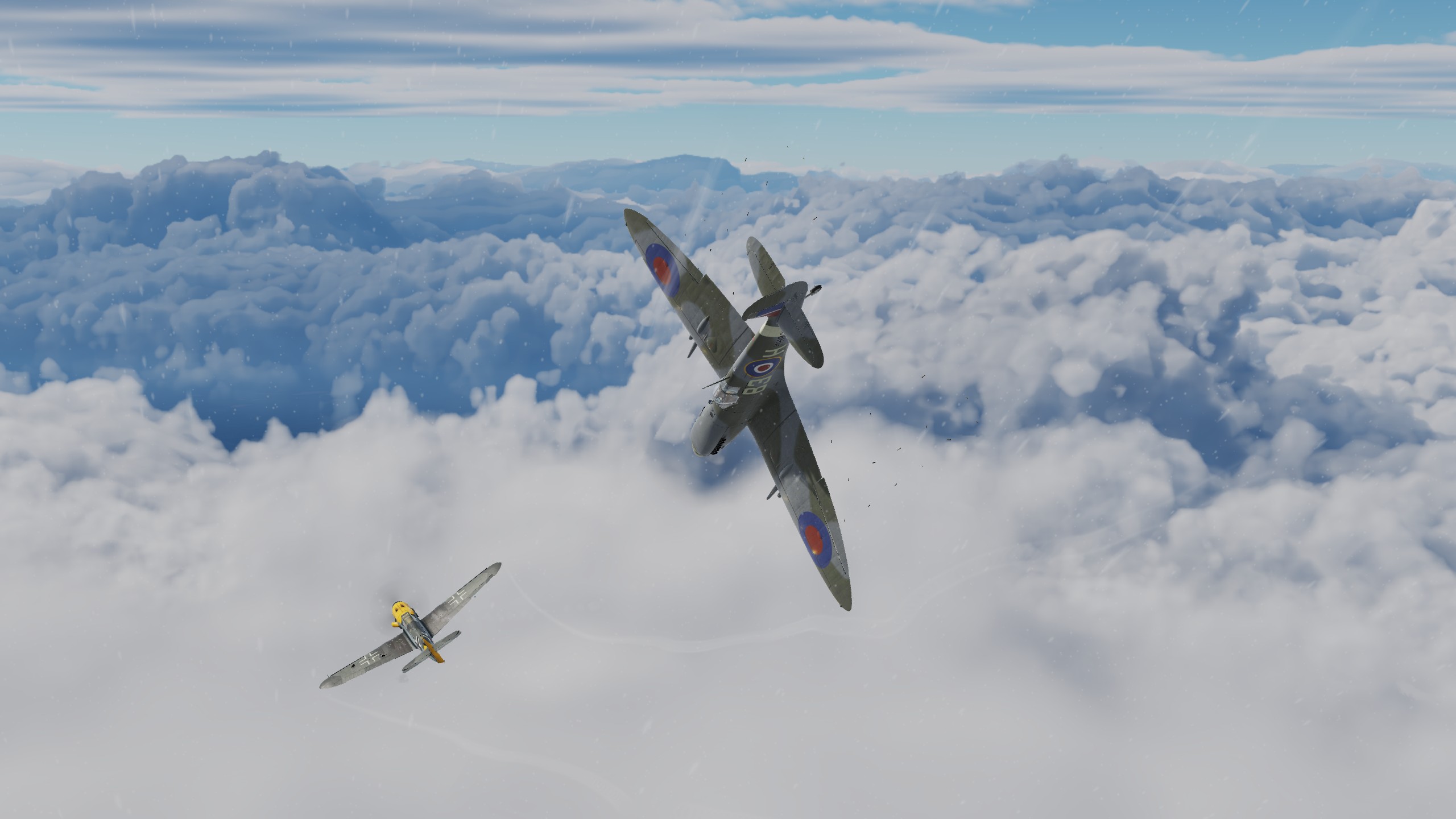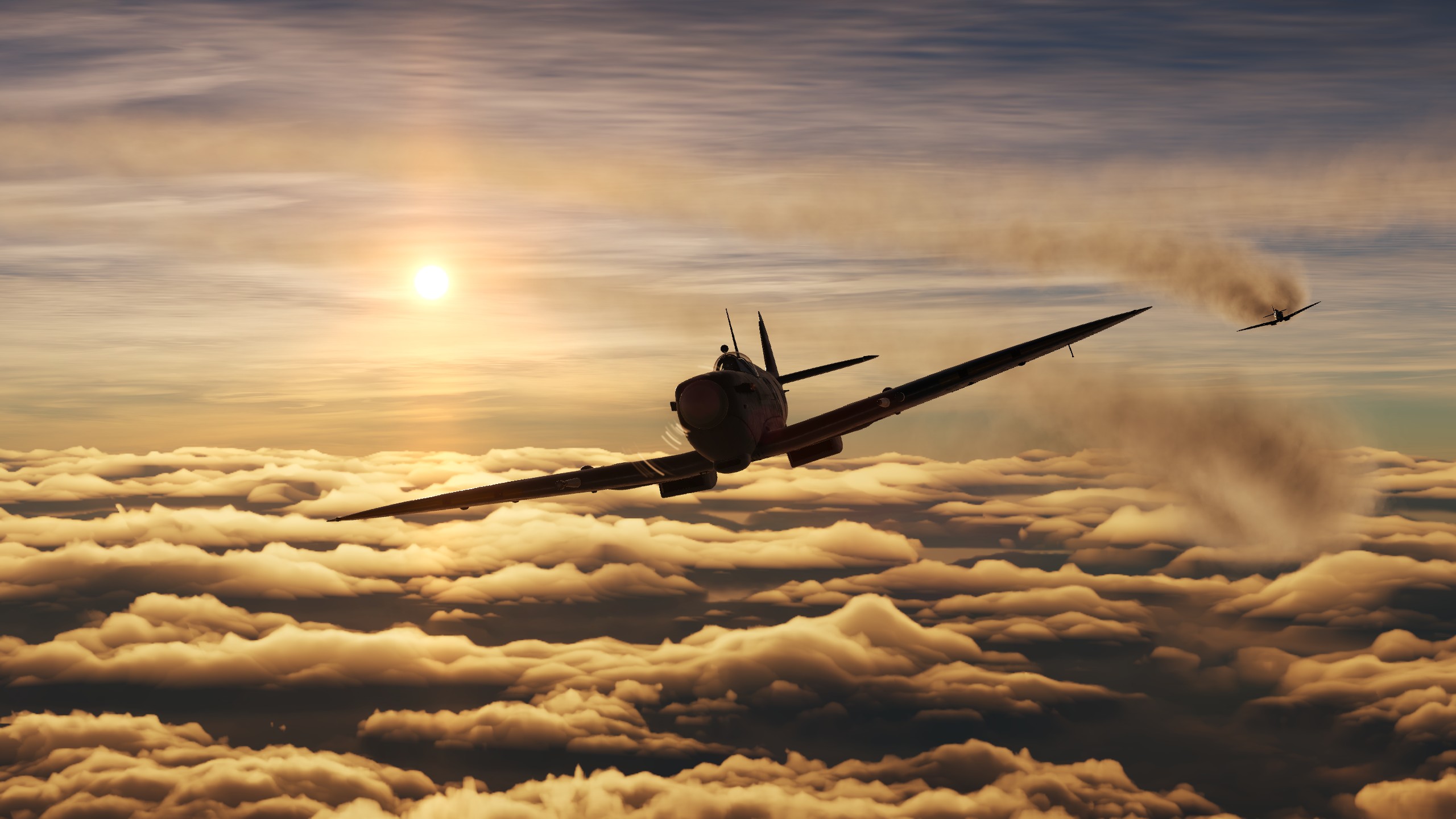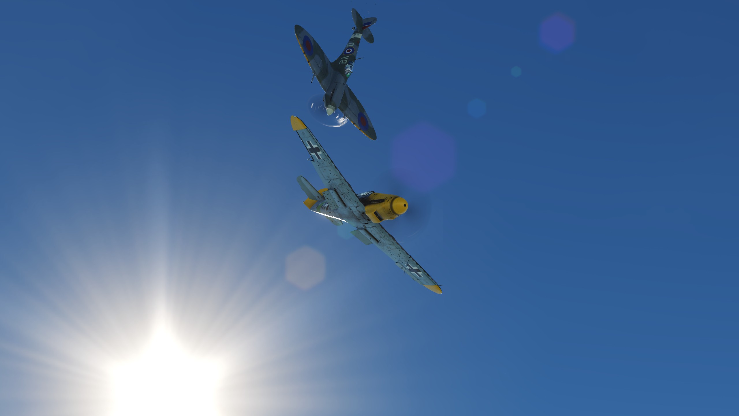 В составе "синего" звена спитфаеров совершил 3 боевых вылета ведущим второй пары. Из особенностей хочу отметить крайне неудовлетворительную видимость. То ли смог от наших заводов, поднявшийся на высоту, то ли еще что, но разглядеть кого-либо на фоне относительно чистого неба было крайне проблематично. По этой причине в первых двух вылетах потеря всех вокруг была обычным явлением.