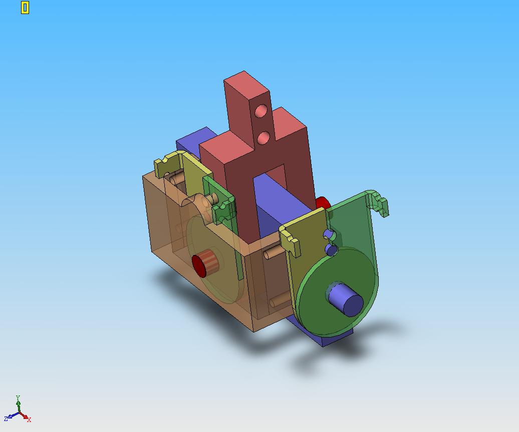Основные изменения -подшипники расположены в центральной пластине, ось фиксируется в вилке, добавлены механизмы центровки-загрузки по осям. Центровка осуществляется за счёт двух пружин (на эскизе их нет)