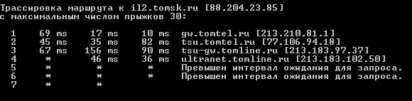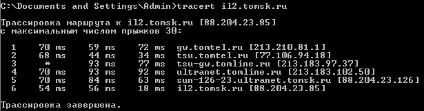 если все нормально, и сервер пингуется, вылезет весь маршрут от провайдера до сервера и значения задержек.
