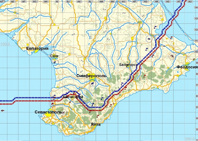 А не далековато ли на юг линия фронат? НЕ с точки зрения истории, а на полетать. Что то уж совсем красные к морю прижаты.