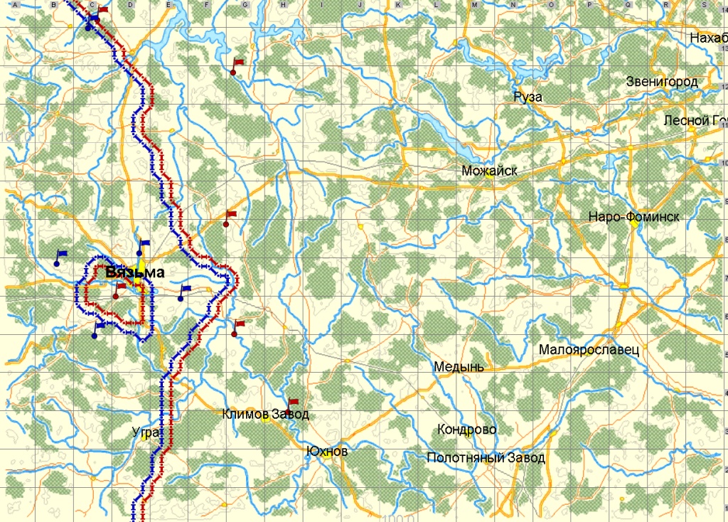 Истребители - Гжатск (Н-10). Штурмовики - старт в воздухе (Н-10), высота 500м, курс 210; посадка на аэродроме Гжатск (Н-10). |  |  |  |  |