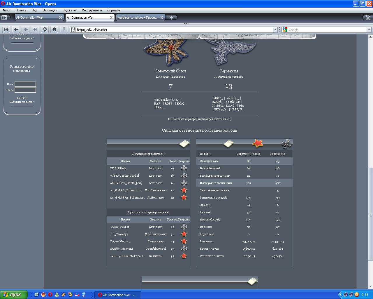 Аха, апшипка вышла, поправил в закрытой инфу по паролям-пилотам. Ух... Ну и весело было. Не помню скока чего натащил в лаптях, но пару приложил об землю точно, правда в итоге в топ вылез на 4-е место (на данный мОмент)  Все, 7 Жуж через часик будут в наличии На мессерах погрустнее, одного в плен сдал, одного об зенитки убил, одним Чайку затаранил. Ну и чОта-там притащил по мелочи.