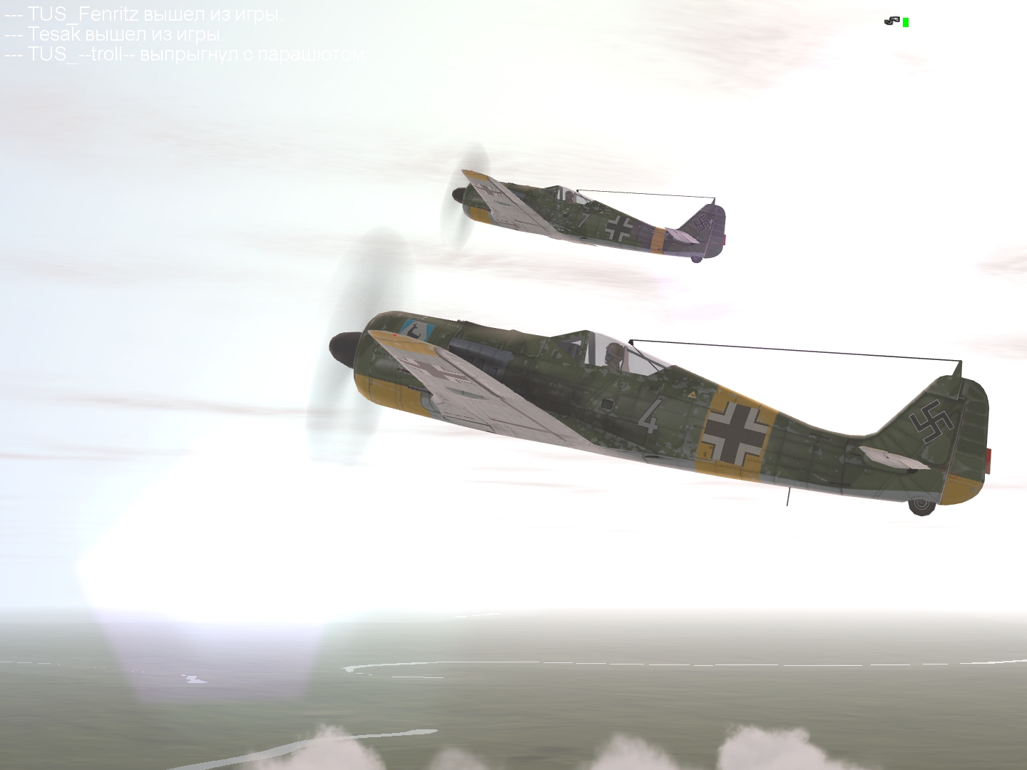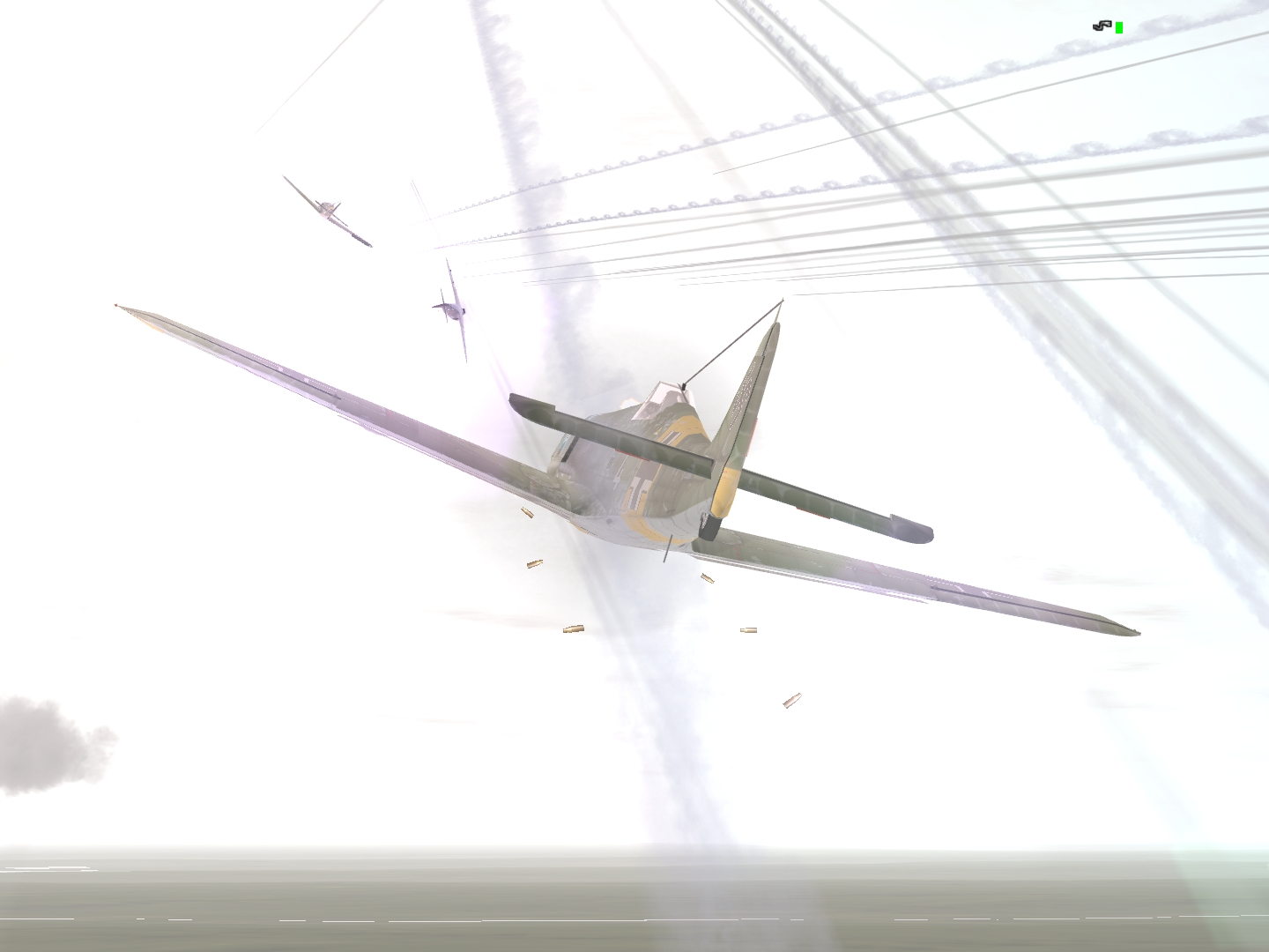 Во втором вылете всё начиналась вроде бы более многообещающе - тут тебе и Юнкерсы под нами, куча Фокке-Вульфов сопровождения, верный ведомый позади. Однако, в момент времени "Че" вся эта свора ухнула в некий непрозрачный колодец, кроме африканца - шел как приклеенный. Впоследствии, очевидно, из того же колодца прилетела очередь и отстрелила мое крыло. Сей факт потряс меня так сильно, что непродолжительное время я даже старательно выводил самолет из штопора :gigi: , однако Яхмос заверил, что попытки эти бесплодны и следует прыгнуть *gam* прямо в логово к мерзким врагам.