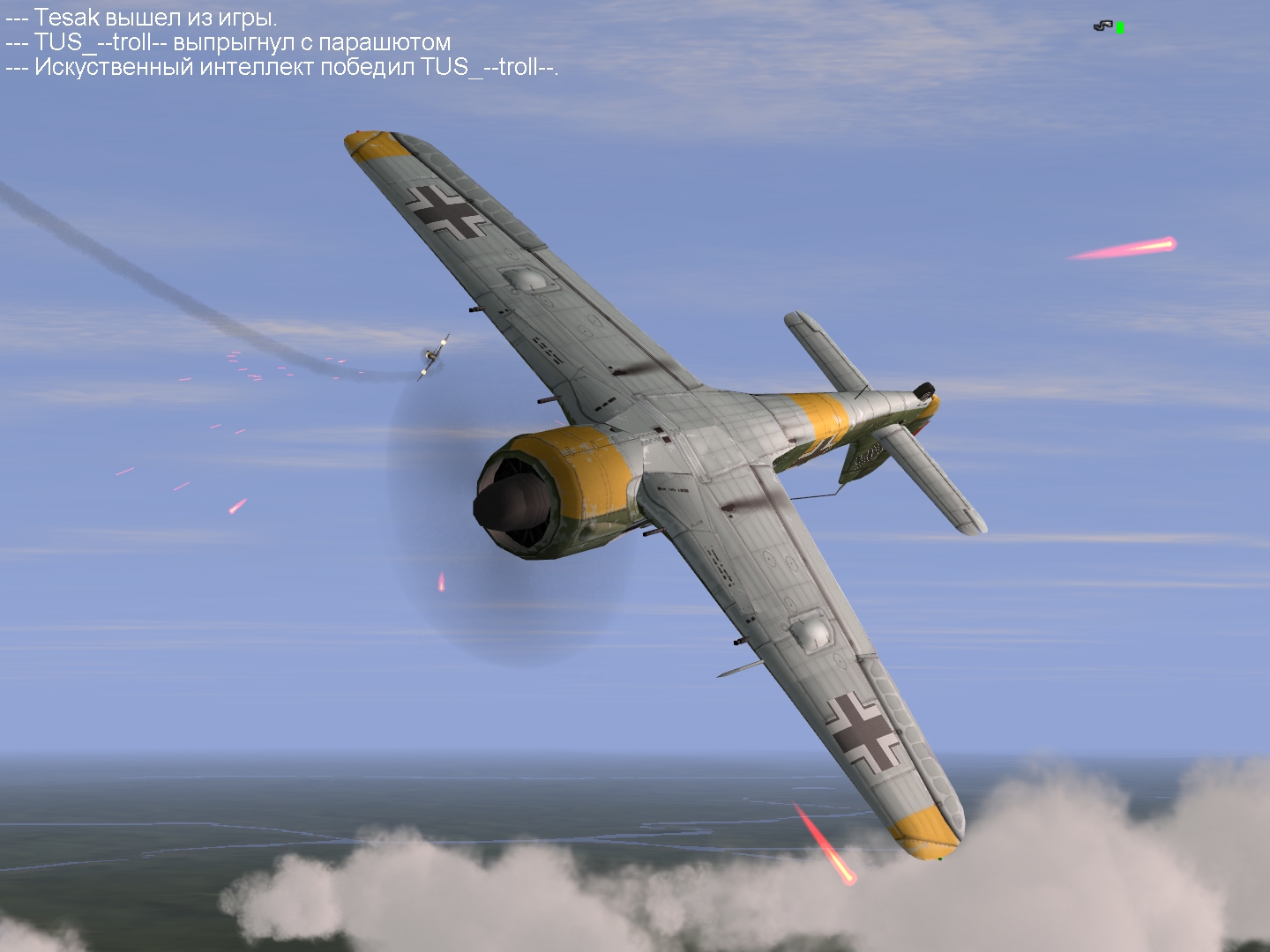 Конечно, я сделал вид, что владею ситуацией. Задачей была расчистка пространства перед приходом "штукас", для меня же главной задачей стала расчистка плексигласса фонаря. Мы вышли в район, товарищи увидели иванов, а я тихо зашкерился на бреющем, решив не вступать в бой, и еще лучше - по-тихому скрыться. Я протер лобовое стекло, внезапно в прицеле вырос силуэт монструозного Ил-2. Я испугался, нажал на гашетку, и на всякий случай дыхнул на стекло, чтобы запотело обратно - ну реально страшно. Но лететь-то куда-то надо, лучше всего на аэродром. Опять протираю - опять Ил! И вот так пять раз. Еле улетел, ей-бо.